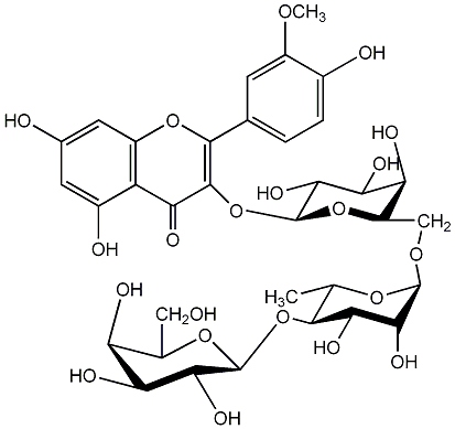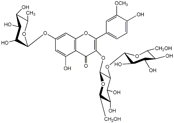 96.52 | C00013916 | Isorhamnetin 3-rhamnosyl-(1->2)-[glucosyl-(1->6)-glucoside] Quercetin 3'-methyl ether 3-rhamnosyl-(1->2)-[glucosyl-(1->6)-glucoside] 3-[(O-6-Deoxy-alpha-L-mannopyranosyl-(1->2)-O-[beta-D-glucopyranosyl-(1->6)]-beta-D-glucopyranosyl)oxy]-5,7-dihydroxy-2-(4-hydroxy-3-methoxyphenyl)-4H-1-benzopyran-4-one |