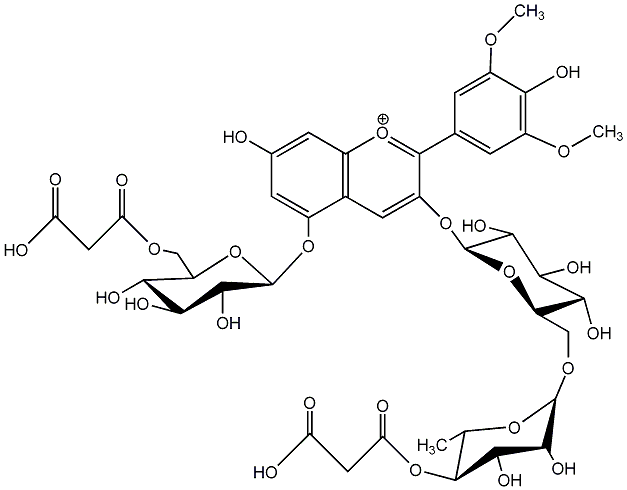 89.86 | C00011078 | Malvidin 3-O-(6-O-(4-O-alpha-rhamnopyranosyl-beta-glucopyranoside)-5-O-(6-O-malonyl-beta-glucopyranoside) | ![]() |