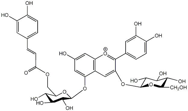 91.30 | C00014762 | Cyanidin 3-(6''-(Z)-caffeylsambubioside) | ![]() |