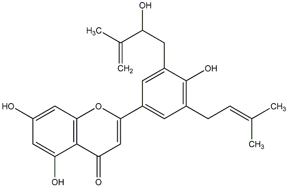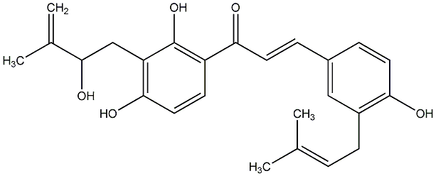 90.63 | C00013517 | 3,5,7-Trihydroxy-2-(4-hydroxyphenyl)-6,8-bis(3-methyl-2-butenyl)-4H-1-benzopyran-4-one | ![]() |