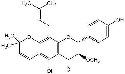 92.42 | C00014394 | Jayacanol (3R)-3-Hydroxyminimiflorin 3,5,2'-Trihydroxy-8-prenyl-6'',6''-dimethylpyrano[2'',3'':7,6]flavanone |