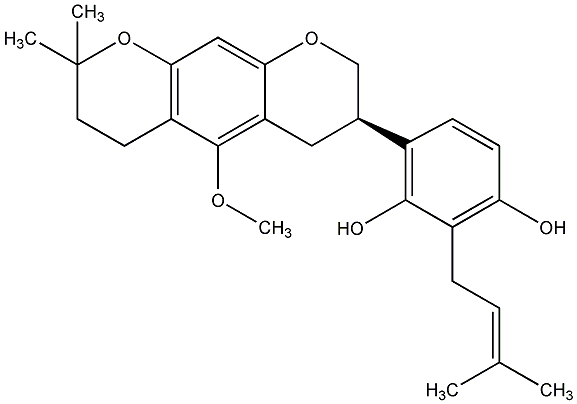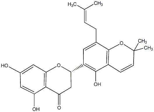 92.54 | C00014395 | 3,4'-Dihydroxy-5-methoxy-8-prenyl-6'',6''-dimethylpyrano[2'',3'':7,6]flavanone | ![]() |