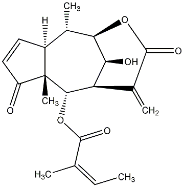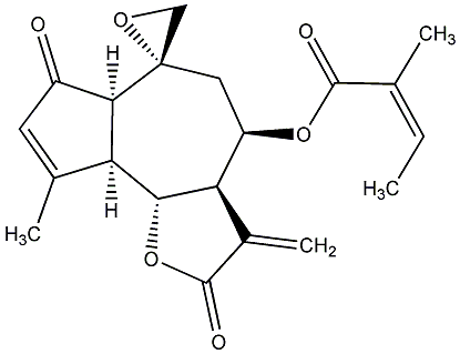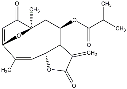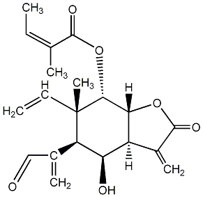 79.25 | C00011985 | [3aS-[3aalpha,4beta,5beta,6alpha,7alpha(Z),7abeta]]- 6-Ethenyl-5-(1-formylethenyl)octahydro-4-hydroxy-6-methyl-3-methylene-2-oxo-7-benzofuranyl ester 2-methyl-2-butenoic acid | ![]() |