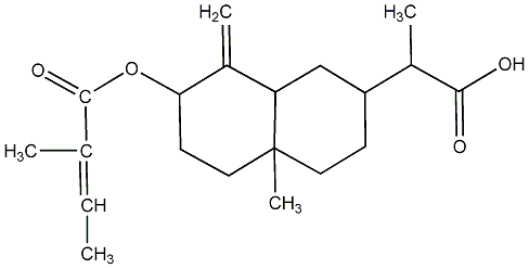 79.25 | C00012848 | Decahydro-alpha,4a-dimethyl-8-methylene-7-[(2-methyl-1-oxo-2-butenyl)oxy]-2-naphthaleneacetic acid | ![]() |
