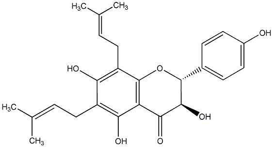 96.92 | C00004093 | Laxifolin 5-Hydroxy-2-(4-hydroxyphenyl)-8,8-dimethyl-6-(3-methyl-2-butenyl)-4H,8H-benzo[1,2-b:3,4-b']dipyran-4-one |