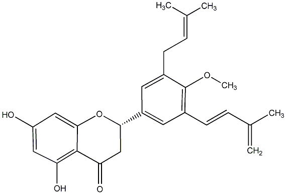 93.55 | C00018903 | (+)-3-[2,4-Dihydroxy-3-(3-methyl-2-butenyl)phenyl]-2,3-dihydro-7-hydroxy-6-(3-methyl-2-butenyl)-4H-1-benzopyran-4-one | ![]() |