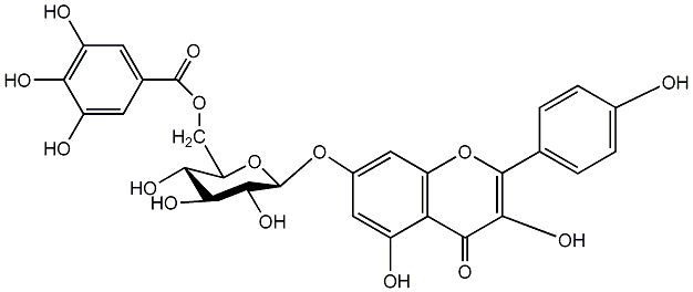 93.62 | C00005846 | Kaempferol 3-(2''-galloylglucoside) Kaempferol 3-O-(2''-O-galloyl)-beta-D-glucoside |