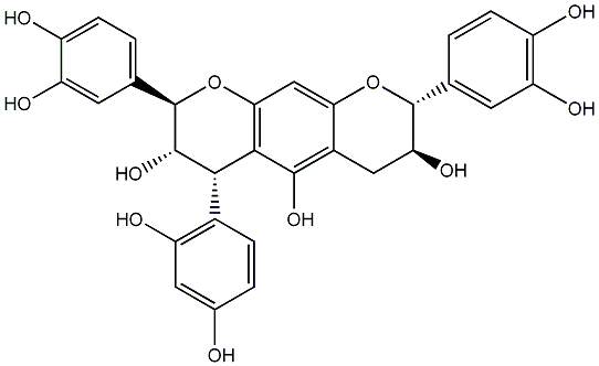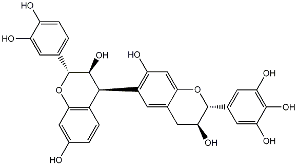 95.40 | C00008948 | (10S)-8,9-Dihydro-10-(2,4-dihydroxyphenyl)-8-(3,4-dihydroxyphenyl)-9-hydroxy-10H-pyrano[2,3-h]catechin | ![]() |
