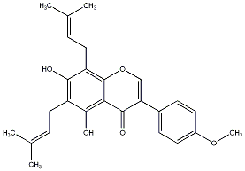 | C00009516 | 6,8-Diprenylgenistein 5,7,4'-Trihydroxy-6,8-diprenylisoflavone 8-(gamma,gamma-Dimethylallyl)wighteone |