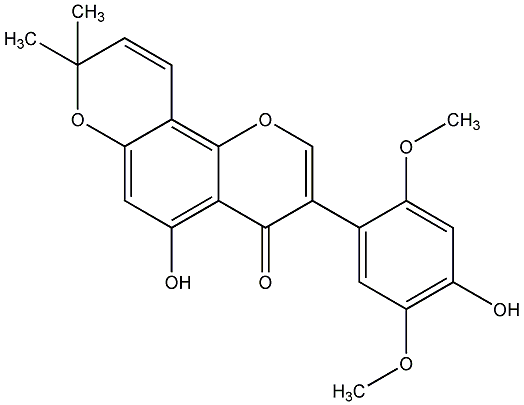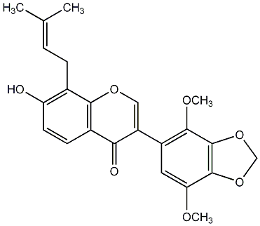 92.06 | C00009885 | Preferrugone 7-Hydroxy-2',5'-dimethoxy-3',4'-methylenedioxy-8-prenylisoflavone |