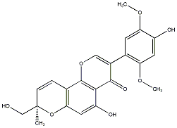 96.83 | C00019668 | 4'-Demethyltoxicarol 5,4'-Dihydroxy-2',5'-dimethoxy-6'',6''-dimethylpyrano[2'',3'':7,8]isoflavone |