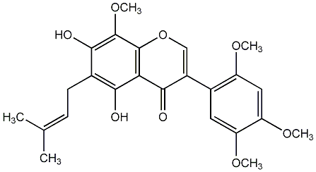 92.42 | C00009841 | 6,8-Diprenylpratensein 5,7,3'-Trihydroxy-4'-methoxy-6,8-diprenylisoflavone |