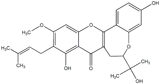 94.20 | C00013504 | Artonin S (+)-6,7-Dihydro-3,9-dihydroxy-6-(1-hydroxy-1-methylethyl)-11-methoxy-10-(3-methyl-2-butenyl)-8H-[1]benzopyrano[3,2-d][1]benzoxepin-8-one |