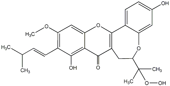 87.32 | C00013496 | Artoindonesianin B (+)-6,7-Dihydro-6-(1-hydroperoxy-1-methylethyl)-3,9-dihydroxy-11-methoxy-10-[(1E)-3-methyl-1-butenyl]-8H-[1]benzopyrano[3,2-d][1]benzoxepin-8-one |