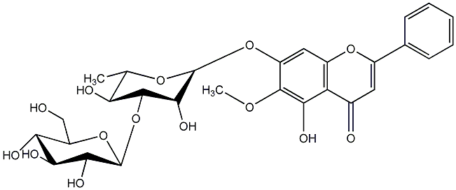 94.32 | C00013599 | Baicalein 6-methyl ether 7-glucosyl-(1->3)-rhamnoside | ![]() |