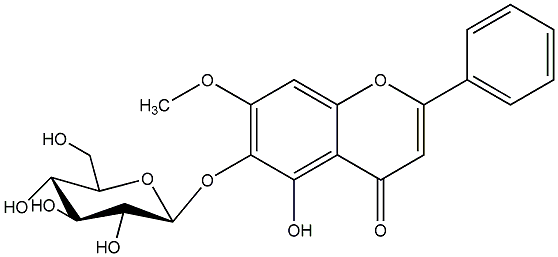 94.03 | C00013601 | 5,6-Dihydroxy-7-methoxyflavone 6-O-beta-D-glucopyranoside 6-(beta-D-Glucopyranosyloxy)-5-hydroxy-7-methoxy-2-phenyl-4H-1-benzopyran-4-one |