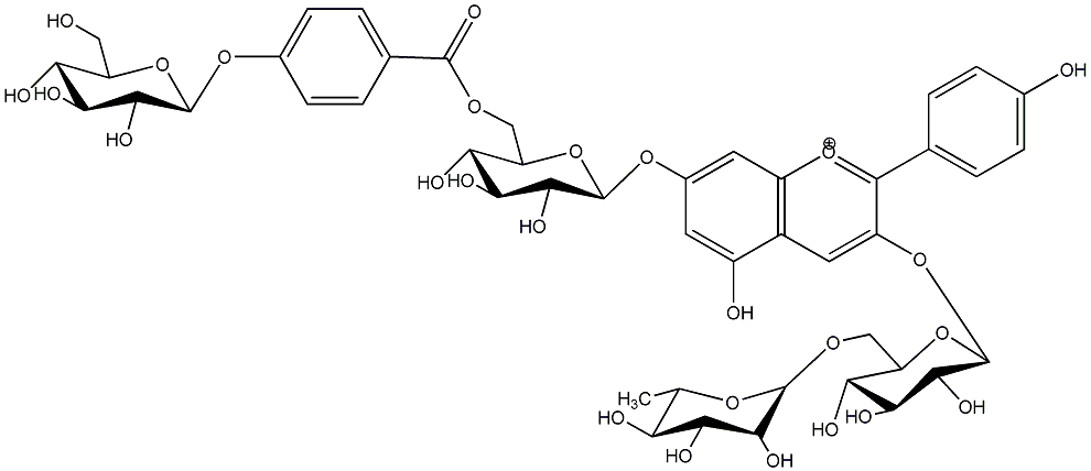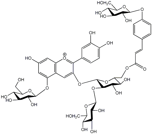 82.10 | C00007659 | Cyanidin 3-O-[2''-O-(xylosyl) 6''-O-(p-O-(glucosyl) p-coumaroyl) glucoside] 5-O-[6'''-O-(malonyl) glucoside] | ![]() |