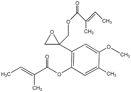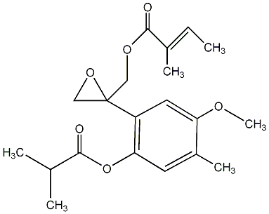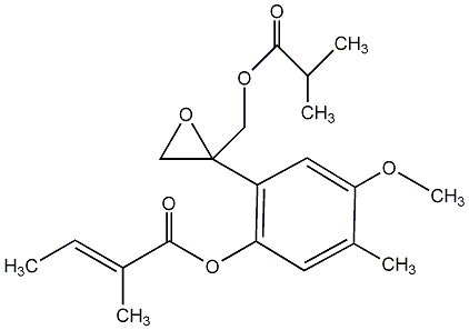 83.67 | C00010834 | (E,E)-2-Methyl-4-methoxy-5-methyl-2-[2-[[(2-methyl-1-oxo-2-butenyl)oxy]methyl]oxiranyl]phenyl ester | ![]() |