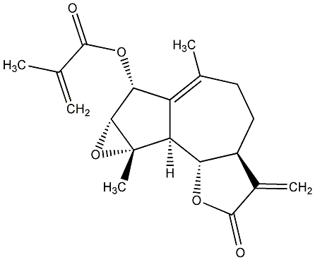 82.35 | C00020623 | [3aS-(3aalpha,7alpha,7abeta,8abeta,8balpha,8cbeta)]-2,3,3a,4,5,7,7a,8a,8b,8c-Decahydro-6,8a-dimethyl-3-methylene-2-oxooxireno[2,3]azuleno[4,5-b]furan-7-yl ester 2-methyl-2-propenoic acid | ![]() |