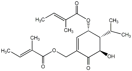 81.82 | C00010963 | [1S-[1alpha(E),3(E),5beta,6alpha]]-5-hydroxy-6-(1-methylethyl)-3-[[(2-methyl-1-oxo-2-butenyl)oxy]methyl]-4-oxo-2-cyclohexen-1-yl ester | ![]() |
