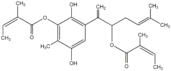 94.55 | C00033552 | 2-Hydroxy-2-(2-hydroxy-4-methylphenyl)propane-1,3-diyl (2Z,2'Z)- bis(2-methylbut-2-enoate) Hofmeisterin IV |