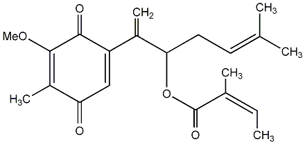 80.36 | C00017442 | [4aR-[4aalpha,5alpha,6alpha(Z),8aalpha,9abeta]]-2,4,4a,5,6,7,8,8a,9,9a-Decahydro-8a-hydroxy-9a-methoxy-3,4a,5-trimethyl-2-oxonaphtho[2,3-b]furan-6-yl ester 2-methyl-2-butenoic acid | ![]() |