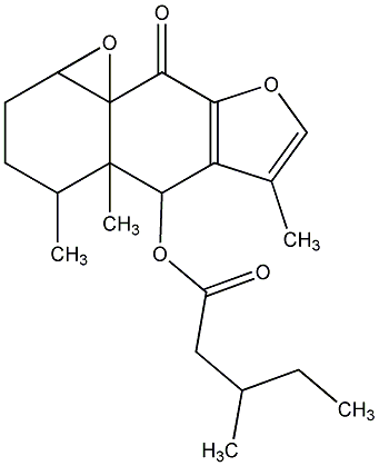 81.82 | C00017388 | 1a,2,4,4a,5,9-Hexahydro-4-hydroxy-4,4a,6-trimethyl-3H-oxireno[8,8a]naphtho[2,3-b]furan-5-yl ester 2-methyl-2-butenoic acid | ![]() |