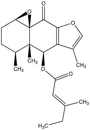81.82 | C00017378 | [1aR-[1aalpha,3alpha(Z),4beta,4abeta,5beta,9aS*]]-5-(acetyloxy)-1a,2,4,4a,5,9-Hexahydro-4,4a,6-trimethyl-3H-oxireno[8,8a]naphtho[2,3-b]furan-3-yl ester 2-methyl-2-butenoic acid | ![]() |