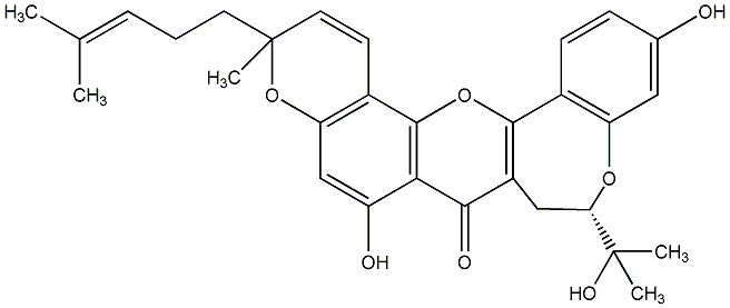 92.21 | C00013489 | Artonin F 5a,6-Dihydro-1,3,8-trihydroxy-5,5,11,11-tetramethyl-9-(3-methyl-2-butenyl)-5H,7H,11H-benzofuro[3,4-bc]pyrano[3,2-h]xanthen-7-one |