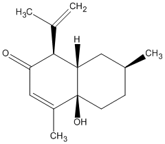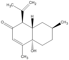 88.57 | C00012841 | alpha-Rotunol [4aS-(4aalpha,6beta,8abeta)]-4a,5,6,7,8,8a-hexahydro-4a-hydroxy-4,8a-dimethyl-6-(1-methylethenyl)-2(1H)-naphthalenone |