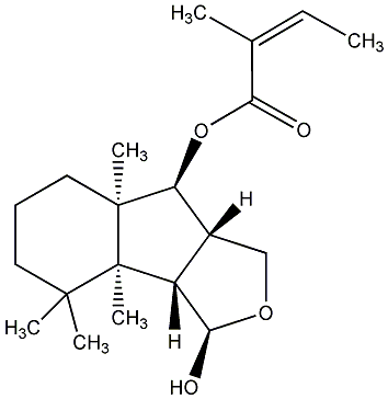 84.91 | C00017407 | [4aS-[4aalpha,5alpha,6alpha(Z),8aalpha]]-4,4a,5,6,7,8,8a,9-Octahydro-3,4a-dimethyl-6-[(2-methyl-1-oxo-2-butenyl)oxy]-naphtho[2,3-b]furan-5-carboxylic acid | ![]() |