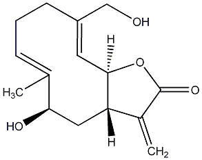 | [ Metabolite Name : [3S-(3R*,3aR*,5R*,6E,10Z,11aS*)]-3a,4,5,8,9,11a-Hexahydro-5-hydroxy-10-(hydroxymethyl)-3,6-dimethylcyclodeca[b]furan-2(3H)-one ] | |