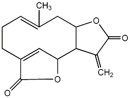 92.31 | C00012206 | [3aS-(3aR*,6E,10E,11aS*)]-2,3,3a,4,5,8,9,11a-Octahydro-6-methyl-3-methylene-2-oxocyclodeca[b]furan-10-carboxylic acid | ![]() |