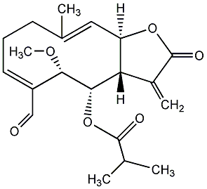 90.74 | C00011989 | [3aS-[3aalpha,4beta,5beta,6alpha(S*),7alpha,7abeta]]-5-(1-Formylethenyl)octahydro-7-hydroxy-6-methyl-3-methylene-6-oxiranyl-2-oxo-4-benzofuranyl ester 2-methyl-2-propenoic acid | ![]() |