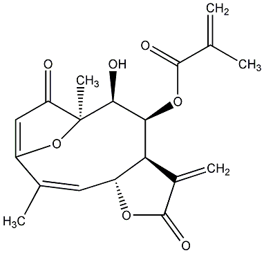 94.44 | C00012089 | [3aS-(3aR*,4R*,5S*,6S*,10Z,11aS*)]- 2,3,3a,4,5,6,7,11a-Octahydro-5-hydroxy-6,10-dimethyl-3-methylene-2,7-dioxo-6,9-epoxycyclodeca[b]furan-4-yl ester 2-methyl-2-propenoic acid | ![]() |