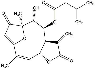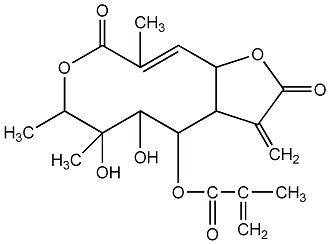 90.91 | C00012316 | [3aS-[3aR*,4R*(Z),5R*,6R*,10E,11aS*]]-2,3,3a,4,5,6,7,8,9,11a-Decahydro-5,6-dihydroxy-6,10-dimethyl-3-methylene-2,7-dioxocyclodeca[b]furan-4-yl ester 2-methyl-2-butenoic acid | ![]() |