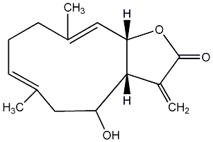 94.59 | C00012182 | [3aS-(3aR*,6Z,8R*,10Z,11aS*)]-3a,4,5,8,9,11a-Hexahydro-8-hydroxy-6,10-dimethyl-3-methylenecyclodeca[b]furan-2(3H)-one | ![]() |