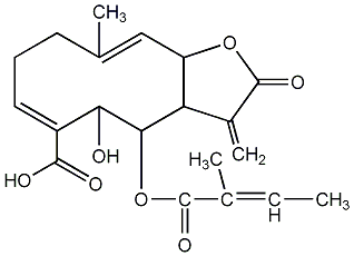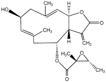 94.34 | C00023191 | 8beta-Tigloyloxy-3beta,14-dihydroxy-6betaH,7alphaH-germacra-1(10)Z,4E-11(13)-trien-6,12-olide | ![]() |