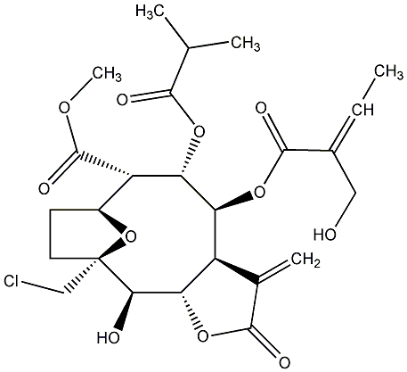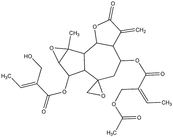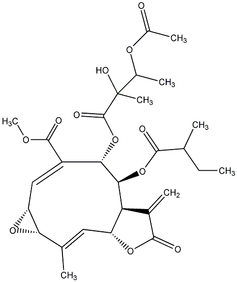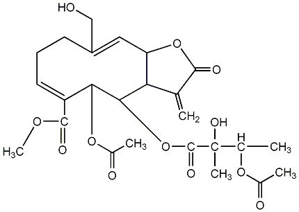 | [ Metabolite Name : [3aS-[3aR*,4R*(Z),5R*,6E,11R*,11aR*]]-11-(Acetyloxy)-4-[[2-[(acetyloxy)methyl]-1-oxo-2-butenyl]oxy]-2,3,3a,4,5,8,9,10,11,11a-decahydro-3,10-bis(methylene)-5-(2-methyl-1-oxopropoxy)-2-oxo-, methyl ester cyclodeca[b]furan-6-carboxylic acid ] | |