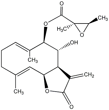 87.04 | C00011806 | 9-(2R,3R,Epoxy-2-methylbutanoyl)-8alpha,9beta-dihydroxy-1(10)E,4E,11(13)-germacratrien-12,6beta-olide | ![]() |