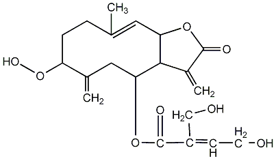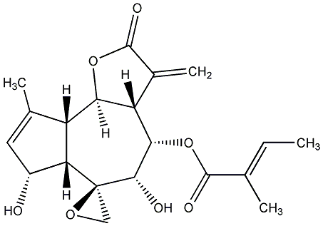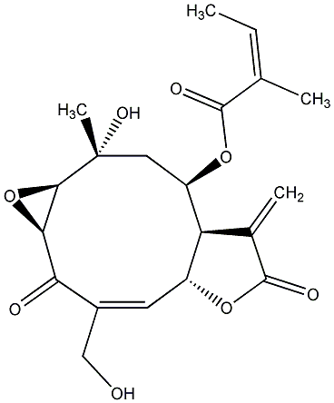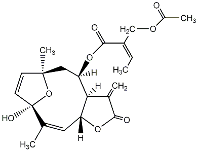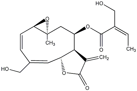 91.23 | C00011990 | [3aS-[3aalpha,4beta(Z),5beta,6alpha(S*),7alpha,7abeta]]-5-(1-Formylethenyl)octahydro-7-hydroxy-6-methyl-3-methylene-6-oxiranyl-2-oxo-4-benzofuranyl ester 2-methyl-2-butenoic acid | ![]() |