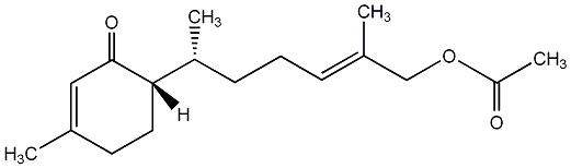 87.80 | C00011679 | [S-[R*,S*-(E)]]-6-[6-(Acetyloxy)-1,5-dimethyl-4-hexenyl]-3-methyl-2-cyclohexen-1-one | ![]() |