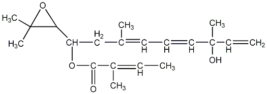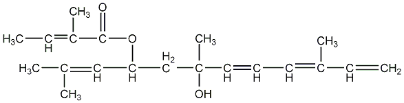 88.00 | C00011416 | 3-Hydroxy-3,7-dimethyl-1-(2-methyl-1-propenyl)-4,6,8-nonatrienyl ester 2-methyl-2-butenoic acid | ![]() |