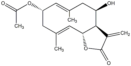 89.36 | C00012252 | [9S-(9R*,10E,11aS*)]-9-(acetyloxy)-5,6,9,11a-tetrahydro-3-(hydroxymethyl)-10-methyl-6-methylenecyclodeca[b]furan-2,7(4H,8H)-dione | ![]() |