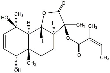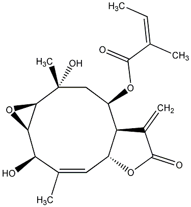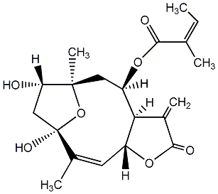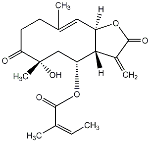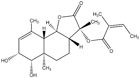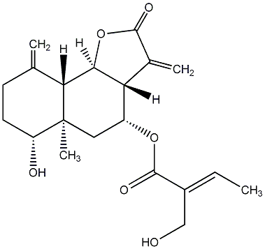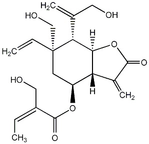 92.73 | C00012316 | [3aS-[3aR*,4R*(Z),5R*,6R*,10E,11aS*]]-2,3,3a,4,5,6,7,8,9,11a-Decahydro-5,6-dihydroxy-6,10-dimethyl-3-methylene-2,7-dioxocyclodeca[b]furan-4-yl ester 2-methyl-2-butenoic acid | ![]() |