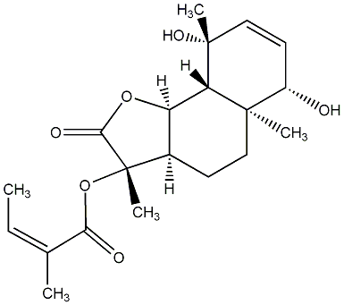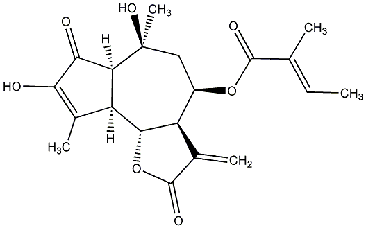 94.44 | C00011999 | [3aR-[3aalpha,4beta(E),6alpha,7beta,7abeta]]-6-ethenyloctahydro-6-methyl-a,3-bis(methylene)-4-[(2-methyl-1-oxo-2-butenyl)oxy]-2-oxo-7-benzofuranacetic acid | ![]() |