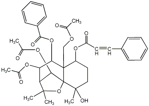 87.37 | C00013148 | Triptofordin D 2 [3R-(3alpha,4alpha,5alpha,5aalpha,6alpha,9beta,9aalpha,10R*)]-4,10-bis(Acetyloxy)-5a-[(acetyloxy)methyl]-5-(benzoyloxy)octahydro-9-hydroxy-2,2,9-trimethyl-2H-3,9a-methano-1-benzoxepin-6-yl ester 3-phenyl-2-propenoic acid |