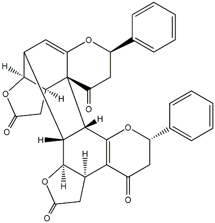86.96 | C00014737 | Bicaryanone C (2S,4bR,7aS,7bR,8R,11R,13aR,13bR,14R,15S)-2,3,4b,7a,7b,8,13b,14,15,18-decahydro-2,11-Diphenyl-11H-8,13a[2',3']-furanofuro[3',2':3,4]naphtho[1,2-b:7,8-b']dipyran-4,6,13,17(5H,12H)-tetrone |
