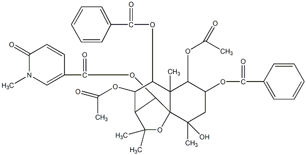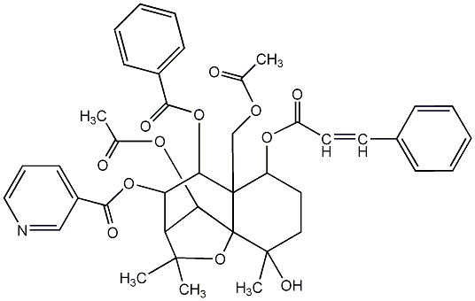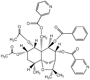 | C00013149 | Triptofordinine A 1 [3R-[3alpha,4alpha,5alpha,5aalpha,6alpha(E),9beta,9aalpha,10R*]]-10-(Acetyloxy)-5a-[(acetyloxy)methyl]-5-(benzoyloxy)octahydro-9-hydroxy-2,2,9-trimethyl-6-[(1-oxo-3-phenyl-2-propenyl)oxy]-2H-3,9a-methano-1-benzoxepin-4-yl ester 3-pyridinecarboxylic acid |