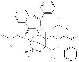 92.04 | C00013141 | Alatolin [3R-(3alpha,4alpha,5alpha,5aalpha,6alpha,7alpha,9alpha,9aalpha,10R*)]-5a-[(Acetyloxy)methyl]octahydro-2,2,9-trimethyl-, 5,10-diacetate 4,6,7-tribenzoate 2H-3,9a-methano-1-benzoxepin-4,5,6,7,10-pentol |